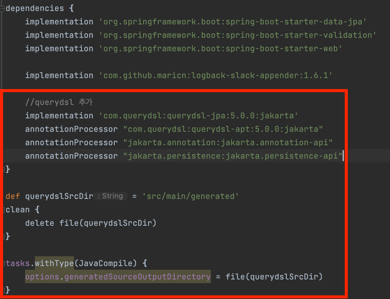 annotationProcessor "com.querydsl:querydsl-apt:5.0.0:jakarta"