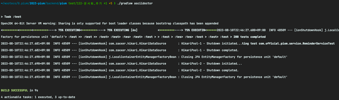 ./gradlew asciidoctor그러면 build > docs > asciidoc 경로에 문서가 생성된다.