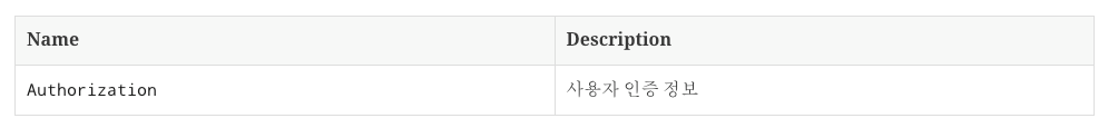 requestHeaders(headerWithName("Authorization").description("사용자 인증 정보")): RequestHeader에 대한 명세를 한다.