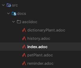 src > docs > asciidoc 디렉터리를 생성하고 .adoc 파일을 생성한다.