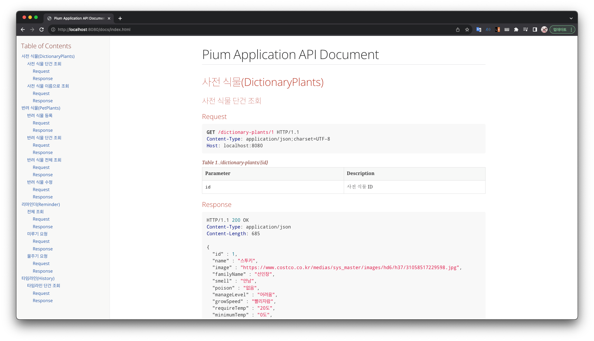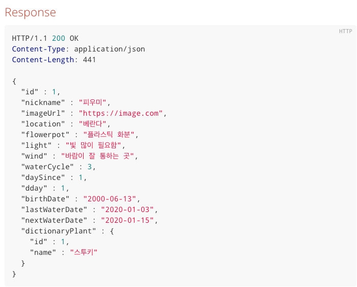 pathParameters(parameterWithName("id").description("반려 식물 ID"))
