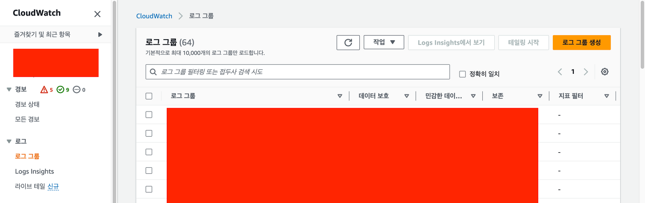 로그 그룹은 클라우드 워치 왼쪽의 로그 -> 로그 그룹에서 생성할 수 있습니다.