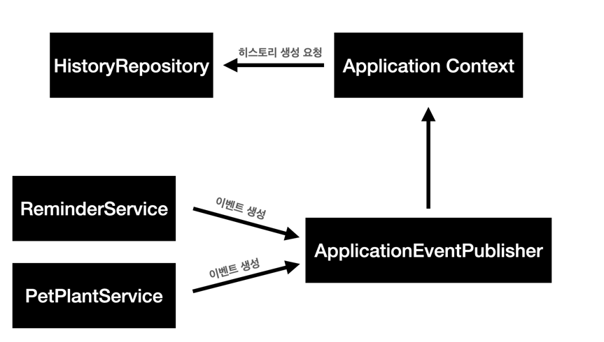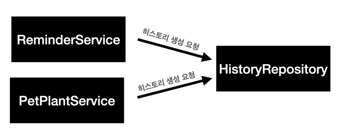이 과정에서 History를 기록하는 코드가 ReminderService, PetPlantService에 침투하는 상황이 발생했다.