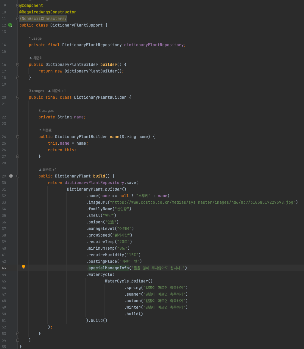 37번째 줄의 DictionaryPlant REQUEST = dictionaryPlantSupport.builder().build(); 는